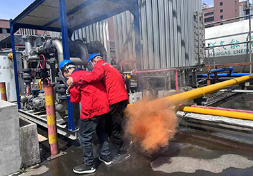近期火災事故頻發(fā),消防形勢嚴峻,應安全監(jiān)督局下文要求,4月24日,公司和華潤氣站人員聯(lián)合在LNG氣化站開展了“天然氣泄漏消防演練”。